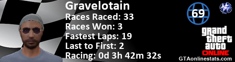 [URL=http://GTAonlinestats.com/showplayer/Gravelotain][IMG]http://GTAonlinestats.com/racesignature/Gravelotain/sig.png[/IMG][/URL]