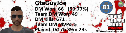 [URL=http://GTAonlinestats.com/showplayer/GtaGuyJoe][IMG]http://GTAonlinestats.com/dmsignature/GtaGuyJoe/sig.png[/IMG][/URL]