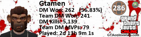 <a href="http://GTAonlinestats.com/showplayer/Gtamen"><img src="http://GTAonlinestats.com/dmsignature/Gtamen/sig.png" alt="Gtamen" border="0" /></a>