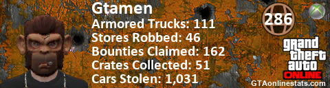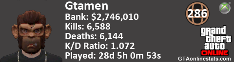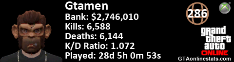 <a href="http://GTAonlinestats.com/showplayer/Gtamen"><img src="http://GTAonlinestats.com/signature/Gtamen/sig.png" alt="Gtamen" border="0" /></a>