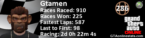 [URL=http://GTAonlinestats.com/showplayer/Gtamen][IMG]http://GTAonlinestats.com/racesignature/Gtamen/sig.png[/IMG][/URL]