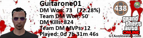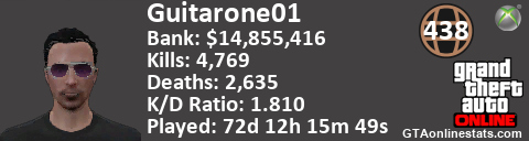 [URL=http://GTAonlinestats.com/showplayer/Guitarone01][IMG]http://GTAonlinestats.com/signature/Guitarone01/sig.png[/IMG][/URL]