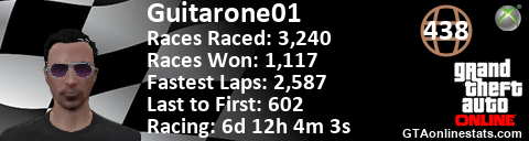 [URL=http://GTAonlinestats.com/showplayer/Guitarone01][IMG]http://GTAonlinestats.com/racesignature/Guitarone01/sig.png[/IMG][/URL]