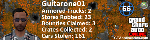 [URL=http://GTAonlinestats.com/showplayer/Guitarone01/2][IMG]http://GTAonlinestats.com/crimesignature/Guitarone01/2/sig.png[/IMG][/URL]
