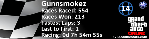 [URL=http://GTAonlinestats.com/showplayer/Gunnsmokez/2][IMG]http://GTAonlinestats.com/racesignature/Gunnsmokez/2/sig.png[/IMG][/URL]