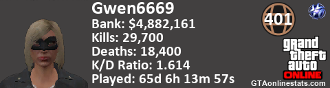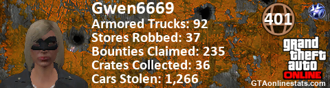 <a href="http://GTAonlinestats.com/showplayer/Gwen6669"><img src="http://GTAonlinestats.com/randomsignature/Gwen6669/sig.png" alt="Gwen6669" border="0" /></a>