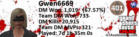 [URL=http://GTAonlinestats.com/showplayer/Gwen6669][IMG]http://GTAonlinestats.com/dmsignature/Gwen6669/sig.png[/IMG][/URL]