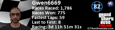 <a href="http://GTAonlinestats.com/showplayer/Gwen6669/2"><img src="http://GTAonlinestats.com/racesignature/Gwen6669/2/sig.png" alt="Gwen6669" border="0" /></a>