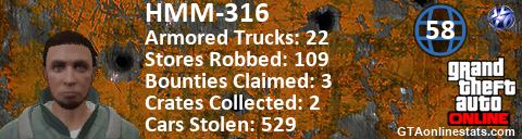 <a href="http://GTAonlinestats.com/showplayer/HMM-316"><img src="http://GTAonlinestats.com/crimesignature/HMM-316/sig.png" alt="HMM-316" border="0" /></a>