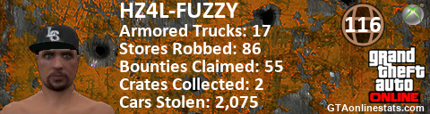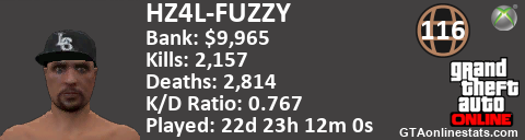 [URL=http://GTAonlinestats.com/showplayer/HZ4L-FUZZY][IMG]http://GTAonlinestats.com/signature/HZ4L-FUZZY/sig.png[/IMG][/URL]