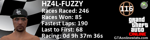 [URL=http://GTAonlinestats.com/showplayer/HZ4L-FUZZY][IMG]http://GTAonlinestats.com/racesignature/HZ4L-FUZZY/sig.png[/IMG][/URL]