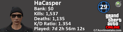 <a href="http://GTAonlinestats.com/showplayer/HaCasper"><img src="http://GTAonlinestats.com/randomsignature/HaCasper/sig.png" alt="HaCasper" border="0" /></a>