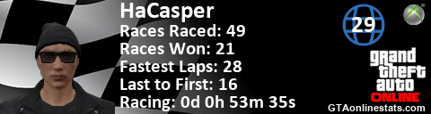 <a href="http://GTAonlinestats.com/showplayer/HaCasper"><img src="http://GTAonlinestats.com/racesignature/HaCasper/sig.png" alt="HaCasper" border="0" /></a>