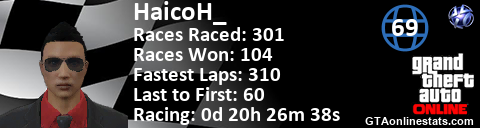 [URL=http://GTAonlinestats.com/showplayer/HaicoH_][IMG]http://GTAonlinestats.com/racesignature/HaicoH_/sig.png[/IMG][/URL]