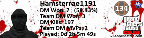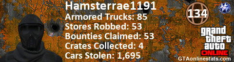 <a href="http://GTAonlinestats.com/showplayer/Hamsterrae1191"><img src="http://GTAonlinestats.com/dmsignature/Hamsterrae1191/sig.png" alt="HamsterRae1191" border="0" /></a>