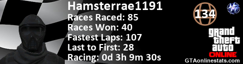 <a href="http://GTAonlinestats.com/showplayer/Hamsterrae1191"><img src="http://GTAonlinestats.com/racesignature/Hamsterrae1191/sig.png" alt="HamsterRae1191" border="0" /></a>