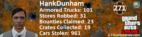 [URL=http://GTAonlinestats.com/showplayer/HankDunham][IMG]http://GTAonlinestats.com/randomsignature/HankDunham/sig.png[/IMG][/URL]