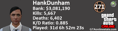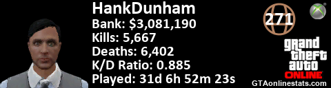 <a href="http://GTAonlinestats.com/showplayer/HankDunham"><img src="http://GTAonlinestats.com/randomsignature/HankDunham/sig.png" alt="HankDunham" border="0" /></a>