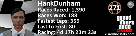 <a href="http://GTAonlinestats.com/showplayer/HankDunham"><img src="http://GTAonlinestats.com/racesignature/HankDunham/sig.png" alt="HankDunham" border="0" /></a>