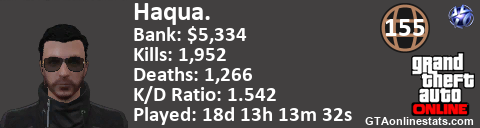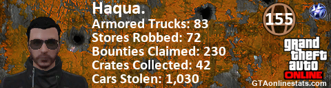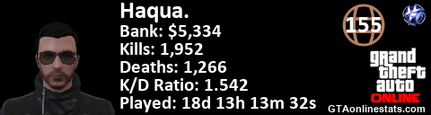 <a href="http://GTAonlinestats.com/showplayer/Haqua."><img src="http://GTAonlinestats.com/signature/Haqua./sig.png" alt="Haqua." border="0" /></a>