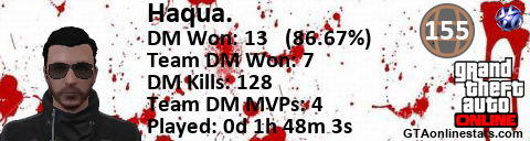 [URL=http://GTAonlinestats.com/showplayer/Haqua.][IMG]http://GTAonlinestats.com/dmsignature/Haqua./sig.png[/IMG][/URL]