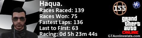 <a href="http://GTAonlinestats.com/showplayer/Haqua."><img src="http://GTAonlinestats.com/racesignature/Haqua./sig.png" alt="Haqua." border="0" /></a>