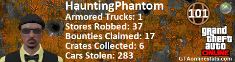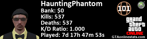<a href="http://GTAonlinestats.com/showplayer/HauntingPhantom"><img src="http://GTAonlinestats.com/dmsignature/HauntingPhantom/sig.png" alt="HauntingPhantom" border="0" /></a>