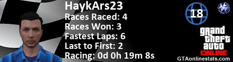 [URL=http://GTAonlinestats.com/showplayer/HaykArs23/2][IMG]http://GTAonlinestats.com/racesignature/HaykArs23/2/sig.png[/IMG][/URL]