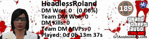 [URL=http://GTAonlinestats.com/showplayer/HeadlessRoland][IMG]http://GTAonlinestats.com/dmsignature/HeadlessRoland/sig.png[/IMG][/URL]