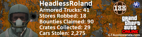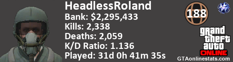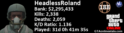 [URL=http://GTAonlinestats.com/showplayer/HeadlessRoland/2][IMG]http://GTAonlinestats.com/signature/HeadlessRoland/2/sig.png[/IMG][/URL]