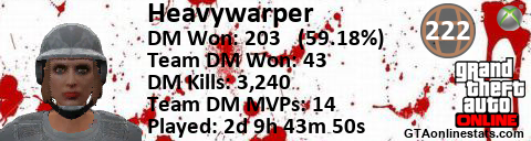 [URL=http://GTAonlinestats.com/showplayer/Heavywarper/2][IMG]http://GTAonlinestats.com/dmsignature/Heavywarper/2/sig.png[/IMG][/URL]