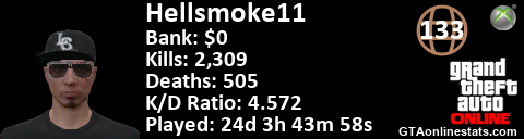 <a href="http://GTAonlinestats.com/showplayer/Hellsmoke11"><img src="http://GTAonlinestats.com/dmsignature/Hellsmoke11/sig.png" alt="Hellsmoke11" border="0" /></a>