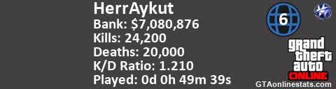 [URL=http://GTAonlinestats.com/showplayer/HerrAykut/2][IMG]http://GTAonlinestats.com/greysignature/HerrAykut/2/sig.png[/IMG][/URL]