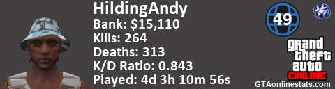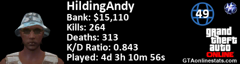 <a href="http://GTAonlinestats.com/showplayer/HildingAndy"><img src="http://GTAonlinestats.com/randomsignature/HildingAndy/sig.png" alt="HildingAndy" border="0" /></a>