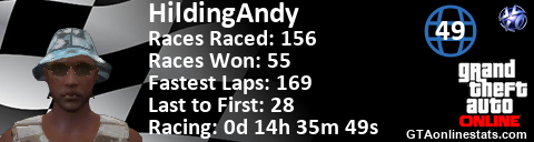 [URL=http://GTAonlinestats.com/showplayer/HildingAndy][IMG]http://GTAonlinestats.com/racesignature/HildingAndy/sig.png[/IMG][/URL]