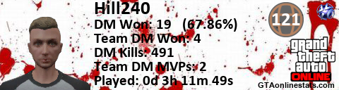 <a href="http://GTAonlinestats.com/showplayer/Hill240"><img src="http://GTAonlinestats.com/dmsignature/Hill240/sig.png" alt="Hill240" border="0" /></a>