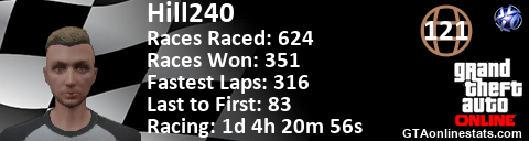 <a href="http://GTAonlinestats.com/showplayer/Hill240"><img src="http://GTAonlinestats.com/racesignature/Hill240/sig.png" alt="Hill240" border="0" /></a>