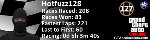 [URL=http://GTAonlinestats.com/showplayer/Hotfuzz128][IMG]http://GTAonlinestats.com/racesignature/Hotfuzz128/sig.png[/IMG][/URL]