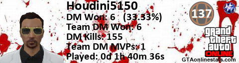 <a href="http://GTAonlinestats.com/showplayer/Houdini5150"><img src="http://GTAonlinestats.com/dmsignature/Houdini5150/sig.png" alt="Houdini5150" border="0" /></a>
