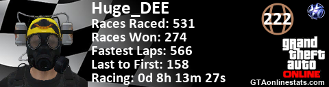 [URL=http://GTAonlinestats.com/showplayer/Huge_DEE][IMG]http://GTAonlinestats.com/racesignature/Huge_DEE/sig.png[/IMG][/URL]