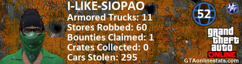 [URL=http://GTAonlinestats.com/showplayer/I-LIKE-SIOPAO][IMG]http://GTAonlinestats.com/crimesignature/I-LIKE-SIOPAO/sig.png[/IMG][/URL]