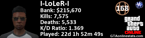 <a href="http://GTAonlinestats.com/showplayer/I-LoLeR-I"><img src="http://GTAonlinestats.com/signature/I-LoLeR-I/sig.png" alt="I-LoLeR-I" border="0" /></a>