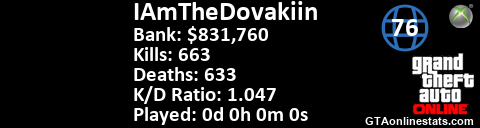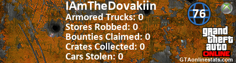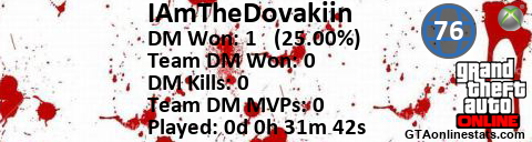 [URL=http://GTAonlinestats.com/showplayer/IAmTheDovakiin/2][IMG]http://GTAonlinestats.com/dmsignature/IAmTheDovakiin/2/sig.png[/IMG][/URL]