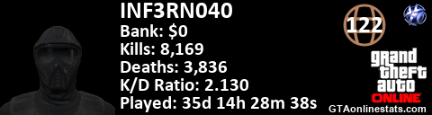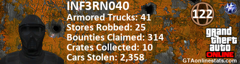 [URL=http://GTAonlinestats.com/showplayer/INF3RN040][IMG]http://GTAonlinestats.com/greysignature/INF3RN040/sig.png[/IMG][/URL]