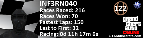 <a href="http://GTAonlinestats.com/showplayer/INF3RN040"><img src="http://GTAonlinestats.com/racesignature/INF3RN040/sig.png" alt="INF3RN040" border="0" /></a>
