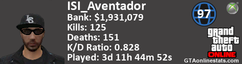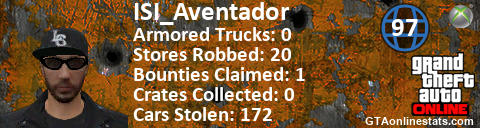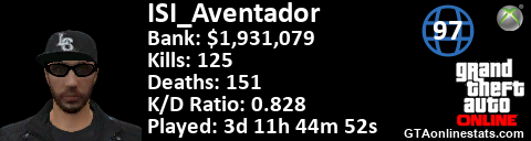 [URL=http://GTAonlinestats.com/showplayer/ISI_Aventador][IMG]http://GTAonlinestats.com/crimesignature/ISI_Aventador/sig.png[/IMG][/URL]