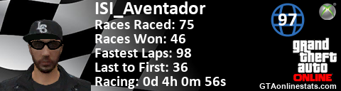 [URL=http://GTAonlinestats.com/showplayer/ISI_Aventador][IMG]http://GTAonlinestats.com/racesignature/ISI_Aventador/sig.png[/IMG][/URL]