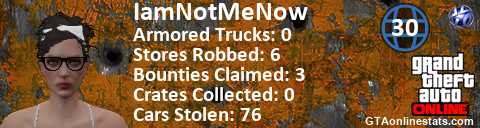 [URL=http://GTAonlinestats.com/showplayer/IamNotMeNow][IMG]http://GTAonlinestats.com/crimesignature/IamNotMeNow/sig.png[/IMG][/URL]