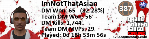 [URL=http://GTAonlinestats.com/showplayer/ImNotThatAsian][IMG]http://GTAonlinestats.com/dmsignature/ImNotThatAsian/sig.png[/IMG][/URL]