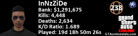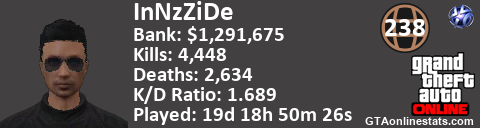 <a href="http://GTAonlinestats.com/showplayer/InNzZiDe"><img src="http://GTAonlinestats.com/dmsignature/InNzZiDe/sig.png" alt="InNzZiDe" border="0" /></a>